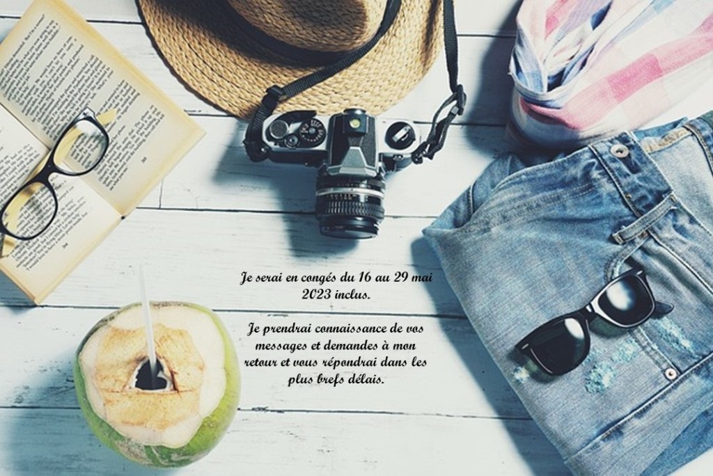 Je serai en congés à partir du 16 mai. Je prendrai connaissance de vos messages à mon retour, le mardi 30 mai, et y répondrai dans les plus brefs délais.