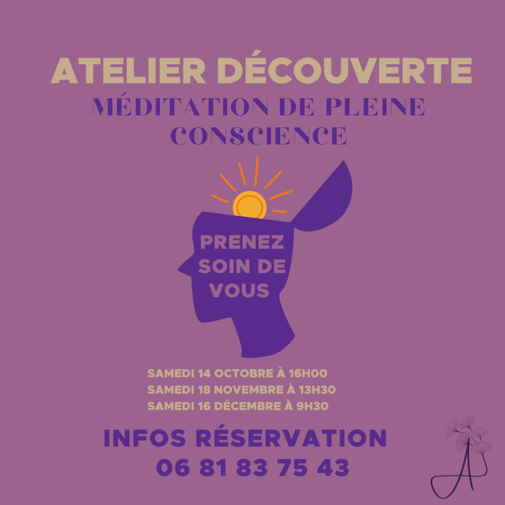 Annick Daret vous propose des ateliers en petits groupes pour découvrir la méditation de pleine conscience. Pour avoir moi-même à titre personnel, réalisé un cycle de méditation de pleine conscience spécifique à la gestion du stress, je ne peux que vous recommander ses ateliers !