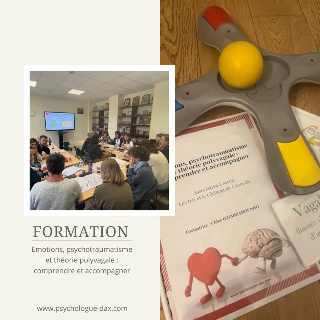 Quel plaisir à nouveau d’avoir pu animer pour la quatrième fois cette journée de formation « Emotions, psychotraumatisme et théorie polyvagale : comprendre et accompagner » ! Je remercie chaleureusement l’association L’Airial pour la confiance renouvelée et pour m’avoir permis de m’engager dans la co-construction de cette formation totalement sur-mesure pour les professionnels des Iris et du Château de Cauneille. Je remercie aussi chaleureusement tous les professionnels pour leur engagement, leurs questionnements, leurs remises en questions, leurs partages de points de vue…!