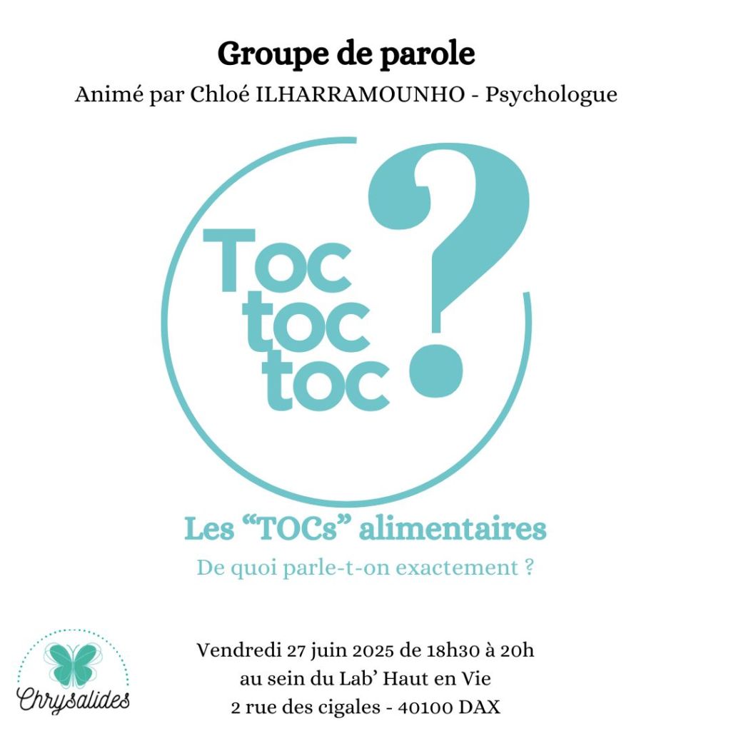 Groupe de parole « Toc, toc toc ? Les tocs alimentaires, de quoi parle-t-on exactement? » avec l’association Chrysalides
